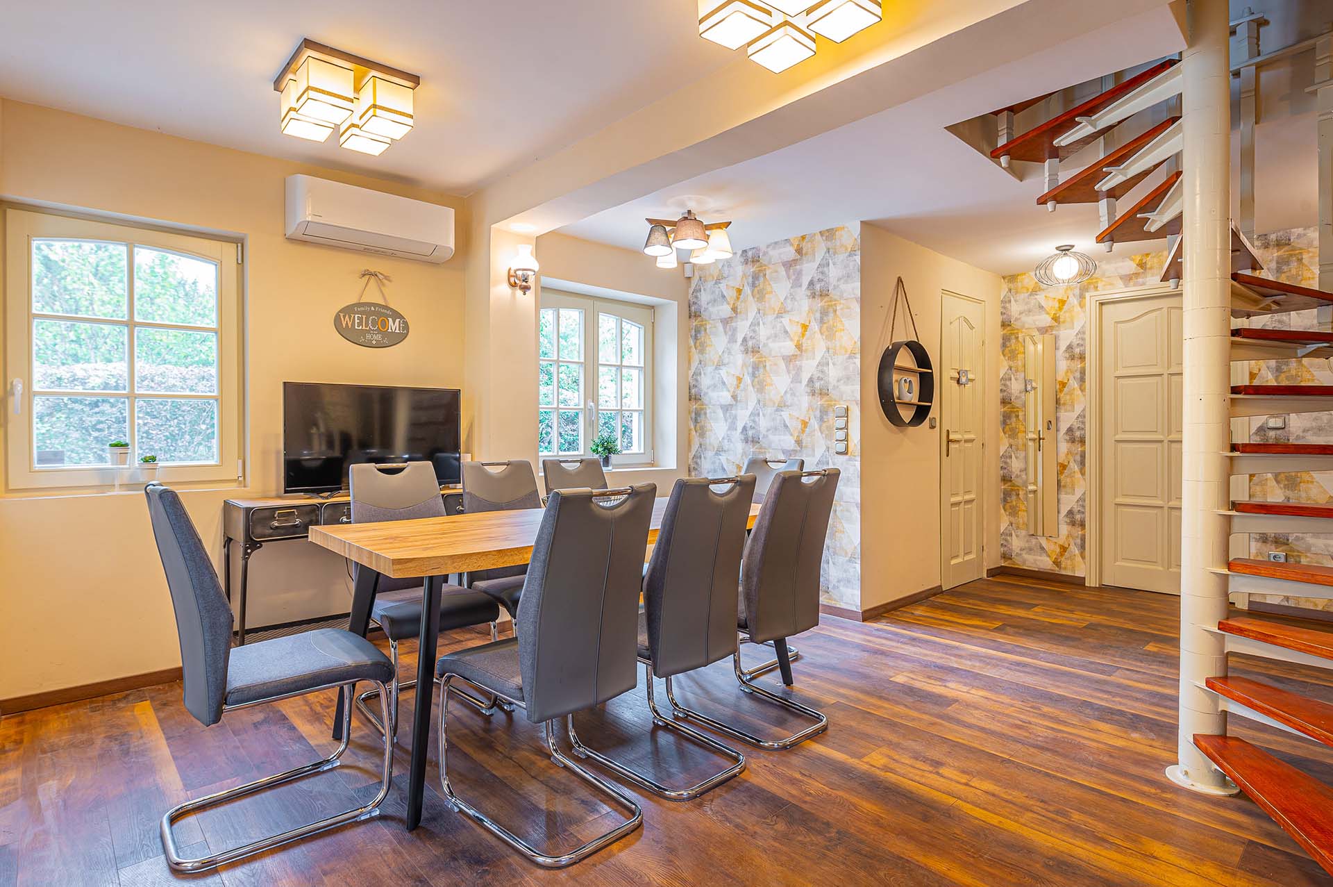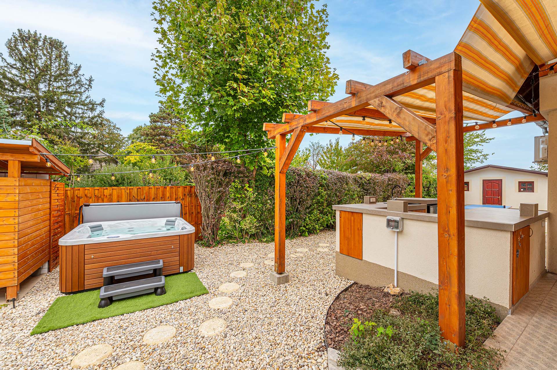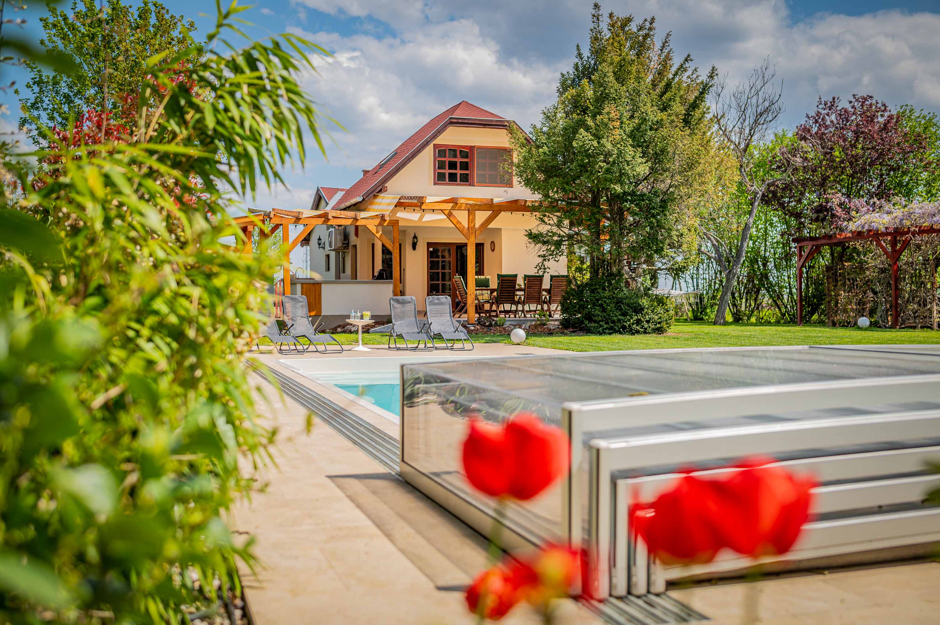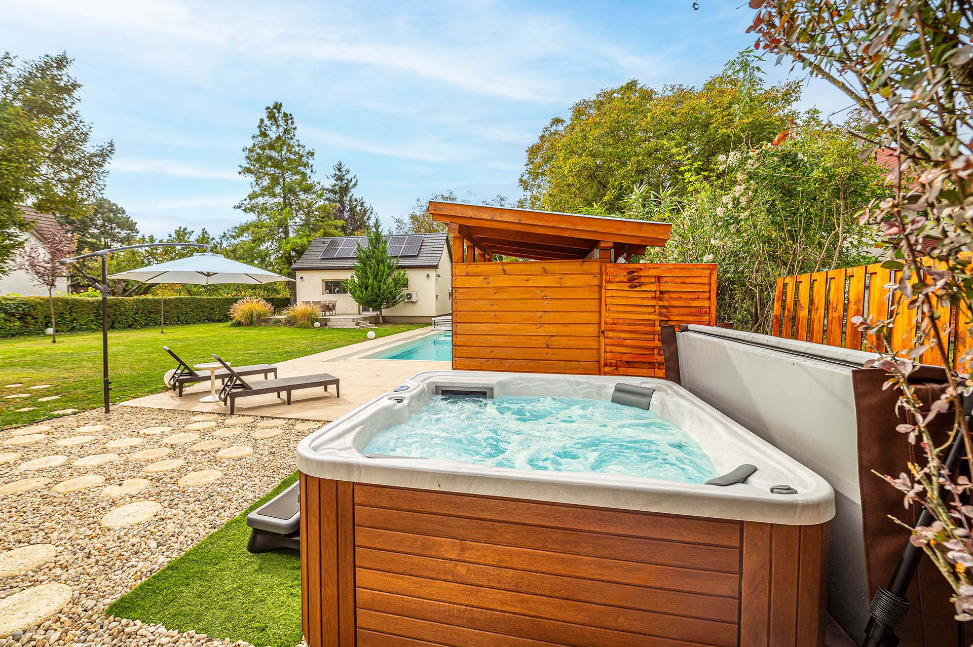 A Balaton északi partjának legelején, alig 1 órára Budapesttől várja pihenni, kikapcsolódni vágyó vendégeit a Lime weekendhouse 1-2. Praktikus, akár több család részére is (8+4 fő), hiszen a telken 2 légkondícionált ingatlan helyezkedik el, a kisebbik épület 2+2 fő, a nagyobbik 6+2 fő részére nyújt kényelmes szállást. Minden hálószobához saját kádas/zuhanyzós fürdőszoba tartozik. A 2 ingatlan között kapott helyet a napos, fedett medence, mely 10x3,5m-es adottságával úszásra, vízilabdázásra egyaránt kiválóan alkalmas, a pihenést nyugágyak és kerti fürdőszoba teszik még kényelmesebbé. A gyerekeknek kerti játszótér, ping-pong asztal, kosárpalánk, foci kapuk biztosítják a felhőtlen kikapcsolódást. A felnőtteknek kültéri jacuzzi, beltéri infraszauna, a teraszon kialakított kültéri konyha (grill és bogrács lehetőség) illetve a telek elhelyezkedéséből adódó intim környezet segít, hogy mihamarabb maguk mögött hagyják a város és a munka zaját. Tavasztól őszig a teljes terület csak egyben kiadó, max. 12 fő részére (2 ház, kert, medence), Ősztől tavaszig összesen 10 főt tudunk fogadni, de külön-külön is kivehető, ebben az esetben garantáljkuk, hogy a másik ház üres marad, nem zavar majd Benneteket senki.